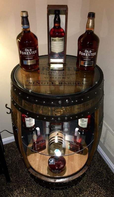 Gabinete de vino en forma de barril GGlobal, madera maciza de estilo vintage con elementos de hierro, diseño fijo para exhibición de vino en la sala de estar