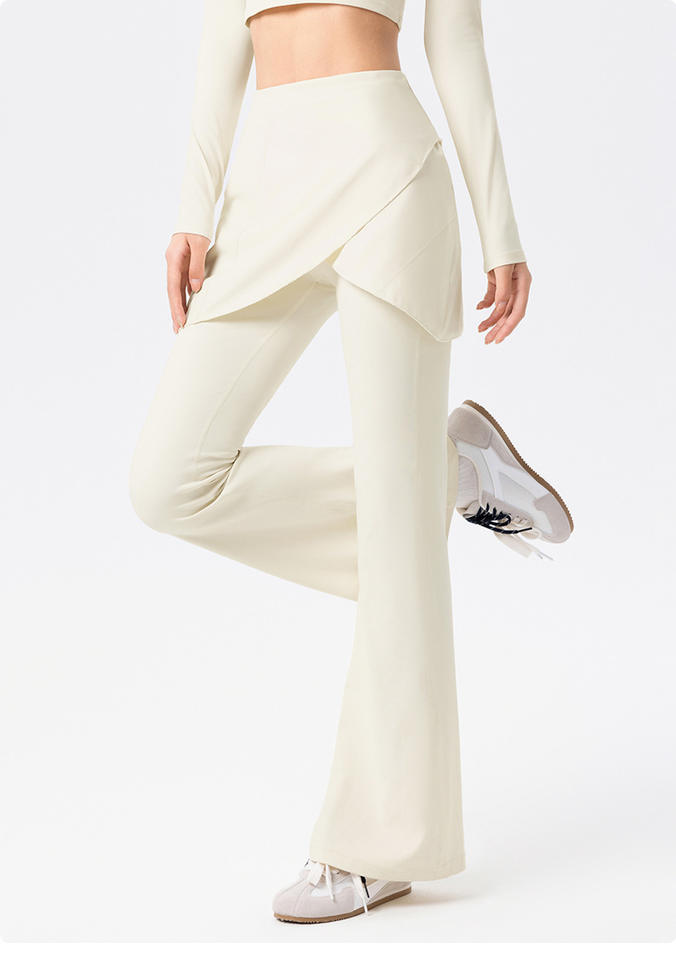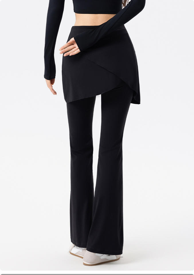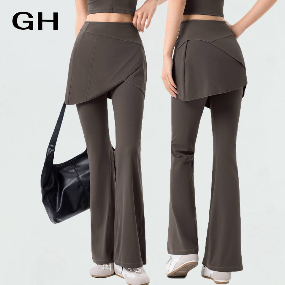 Pantalones de Yoga 2 en 1 GH de Color Sólido, Pantalones Acampanados de Cintura Alta, Leggings Delgados para Mujer, Pantalones Falda Deportivos para Exteriores con Cierre Elástico