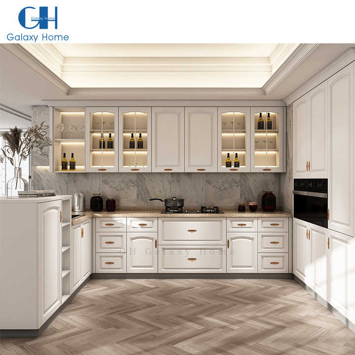 GH-armarios de cocina hechos a medida, estilo neoclásico italiano, pintura de madera de roble blanco, en forma de U, juegos de diseño
