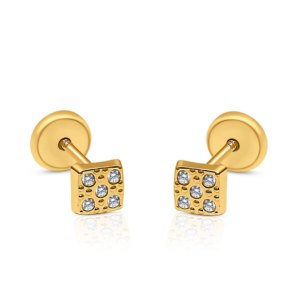 Pendientes de tuerca finos de oro rosa de moda certificados por GIA, piedras cuadradas CZ, compromiso adecuado, patrón de forma de tornillo chapado en oro