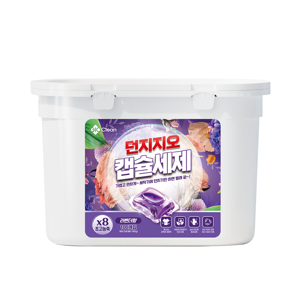 GIO Clean Dunjigio Laundry Capsule 100Count 8X Concentrado 7 Enzimas Quitamanchas Blanqueamiento Color Seguro Detergente Neutro