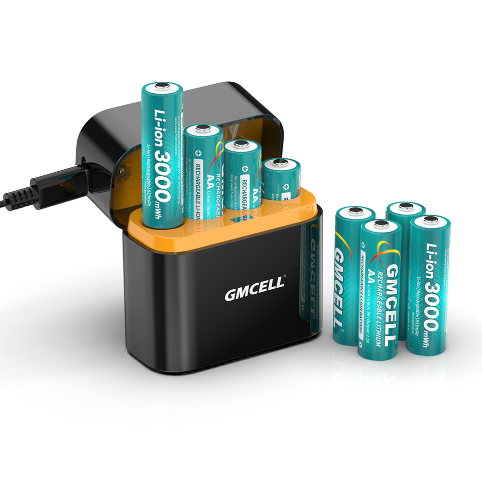 GMCELL 5V 3A Tipo-C Baterías AA Cargador portátil 15W Carga rápida Cargador de batería AA de iones de litio recargable
