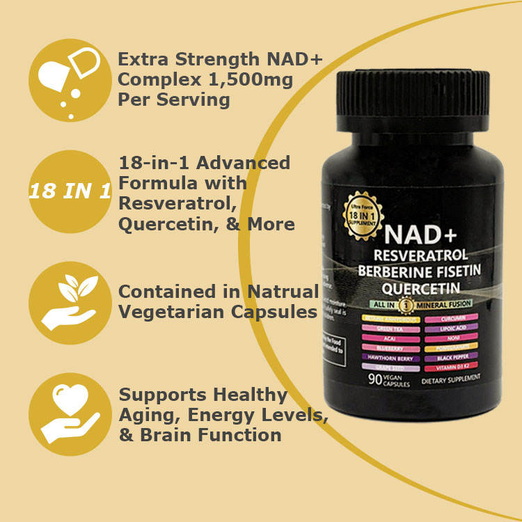 Fabricante de Complejo NAD+ Certificado por GMP, Fórmula Personalizada con 18 Ingredientes Activos, Bajo MOQ, Etiqueta Privada OEM, Longevidad, Venta al Por Mayor