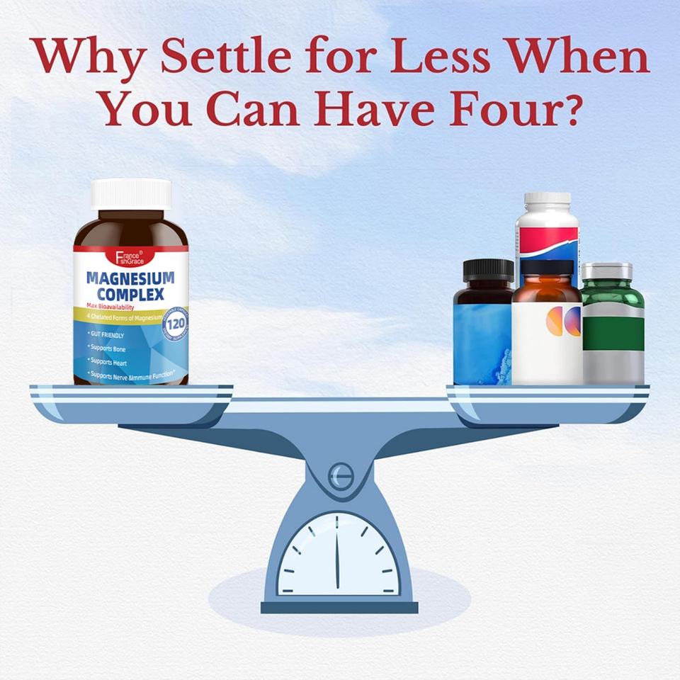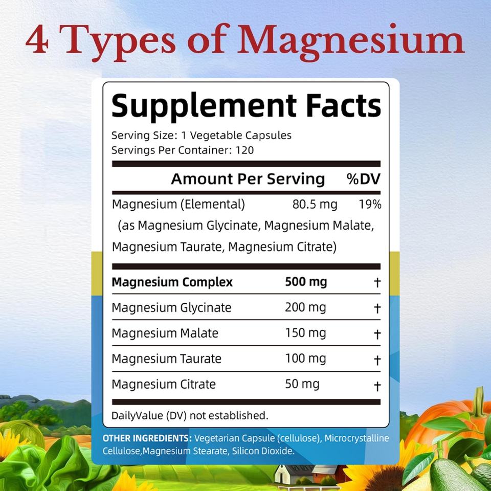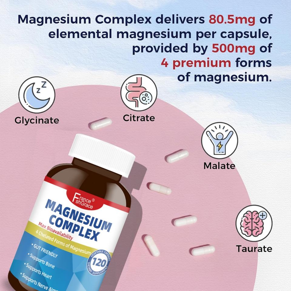 Suplemento de Magnesio Complejo de Fábrica GMP para Dormir y Apoyar la Salud del Corazón, 120 Cápsulas Veganas de Magnesio de Alta Absorción