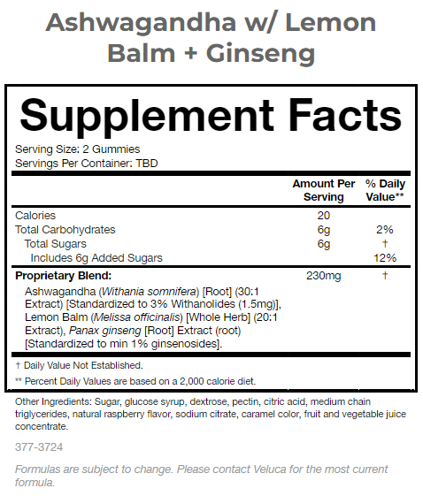 Nombre del producto:Ashwagandha W/Bálsamo de limón + Ginseng gummies
