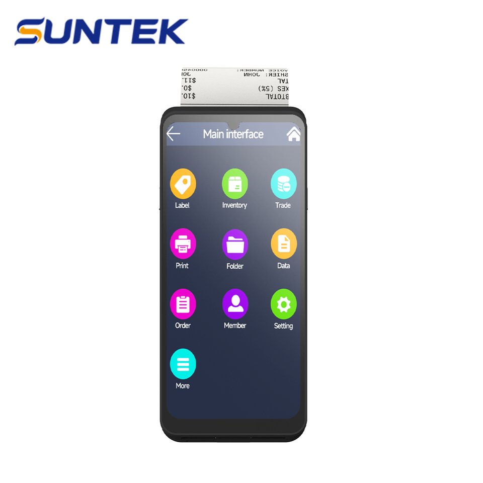 Terminal POS Inteligente Inalámbrico Portátil GMS 4G Android 15.0 con Doble Pantalla, Procesador Octa-Core, Batería de 5200mAh, SUNTEK