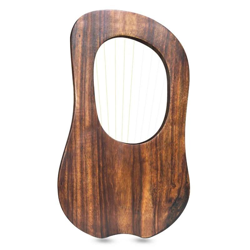 GNG IMPEX Lira de 10 Cuerdas de Acero Inoxidable y Palisandro, Instrumento Musical Portátil para Principiantes, con Llave de Afinación, Bolsa de Transporte, Acabado Pulido