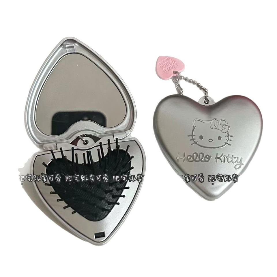 GOODWAY Cepillo Plegable Compacto de Bolsillo con Espejo y Logotipo Personalizado, Cepillo para el Cabello Plegable en Forma de Corazón con Llavero, Bonito Adorno para Bolsos