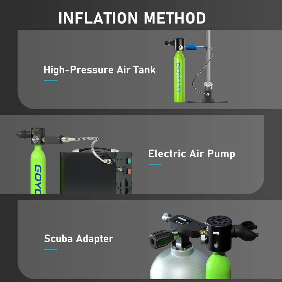 GOYOJO 0.5L Mini tanque de buceo, Kit de tanque de buceo portátil, tanque de pulmón recargable de 3000 PSI para entrenamiento de respiración subacuática de 6-12 min
