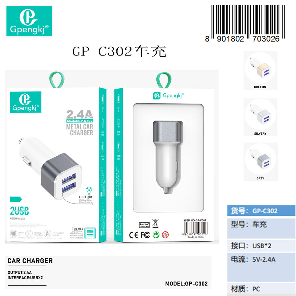 Cargador de coche para coche, cargador de coche compacto, USB, venta al por mayor, accesorio para coche, USB compacto, venta al por mayor, accesorio para coche, 8901802703026, 12 unidades
