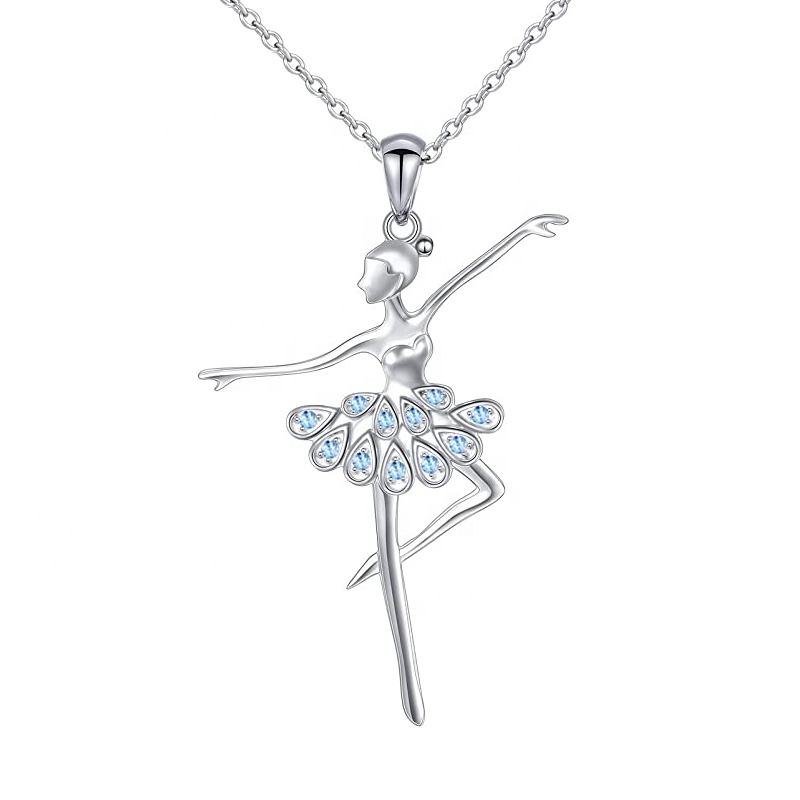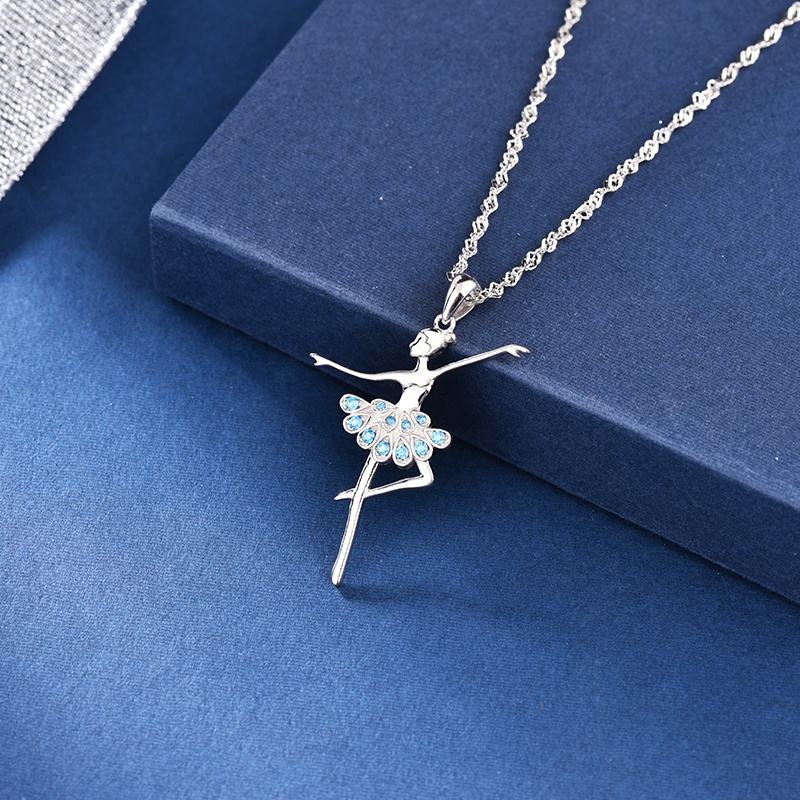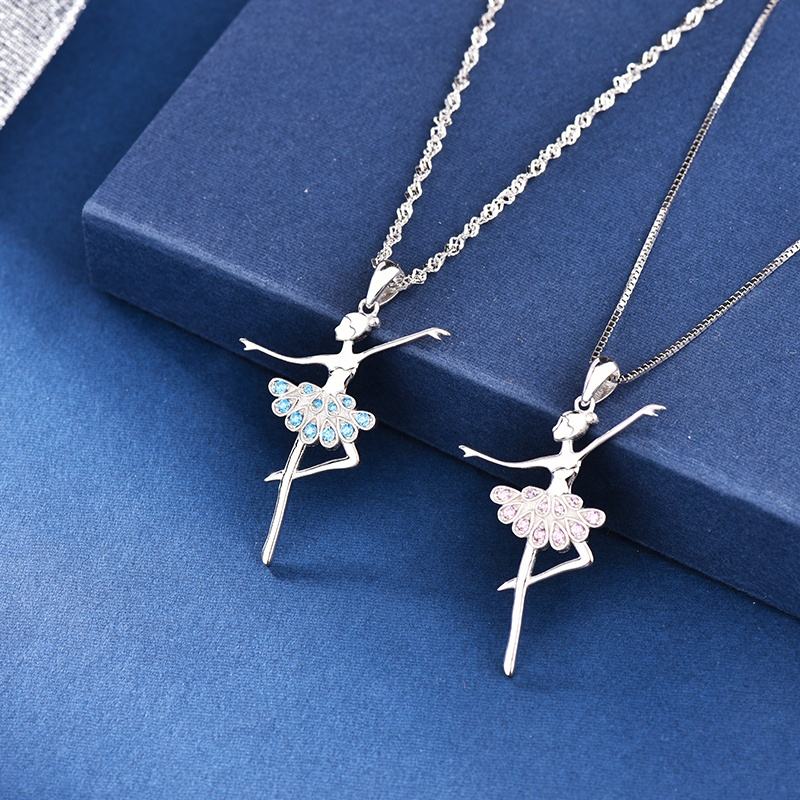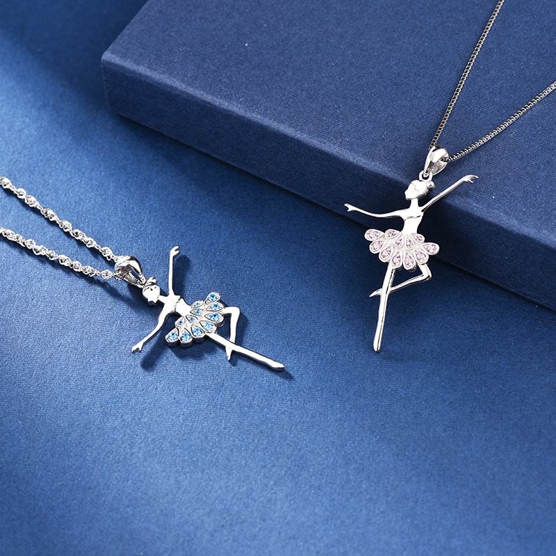 Colgante de Bailarina de Ballet con Circonita Azul/Rosa GP16, Colgante de Plata de Ley 925 con Cadena para Collares, Joyería