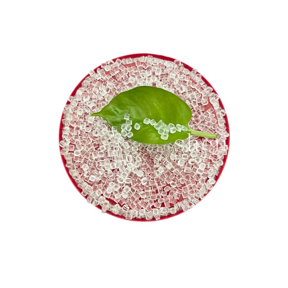 Gránulos de Plástico GPPS 123 de Grado de Inyección, Alta Resistencia a la Temperatura, Alto Flujo, Alto Brillo, Base Azul Transparente
