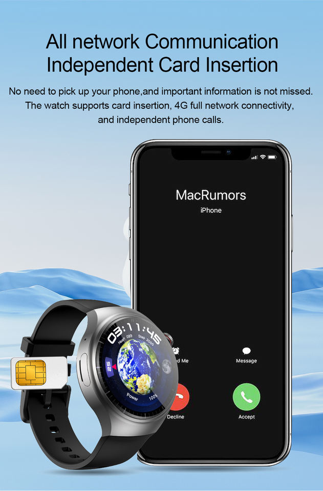 Reloj inteligente GPS, dispositivos portátiles con frecuencia cardíaca AMOLED BT, llamadas, conteo de pasos, calorías, GPS, tarjeta SIM 4G, relojes inteligentes deportivos