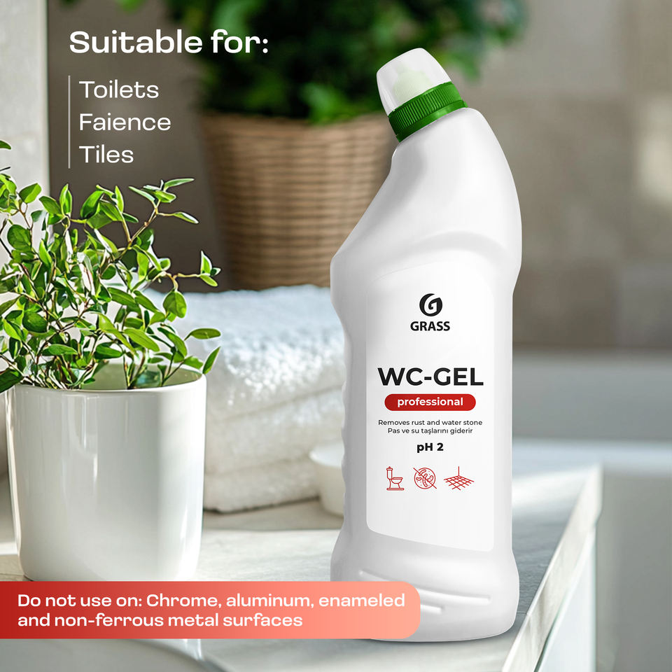 Limpiador de Inodoros Profesional GRASS WC-Gel de 750 ml, Eficaz para Suciedad Pesada, Producto Profesional para Inodoros