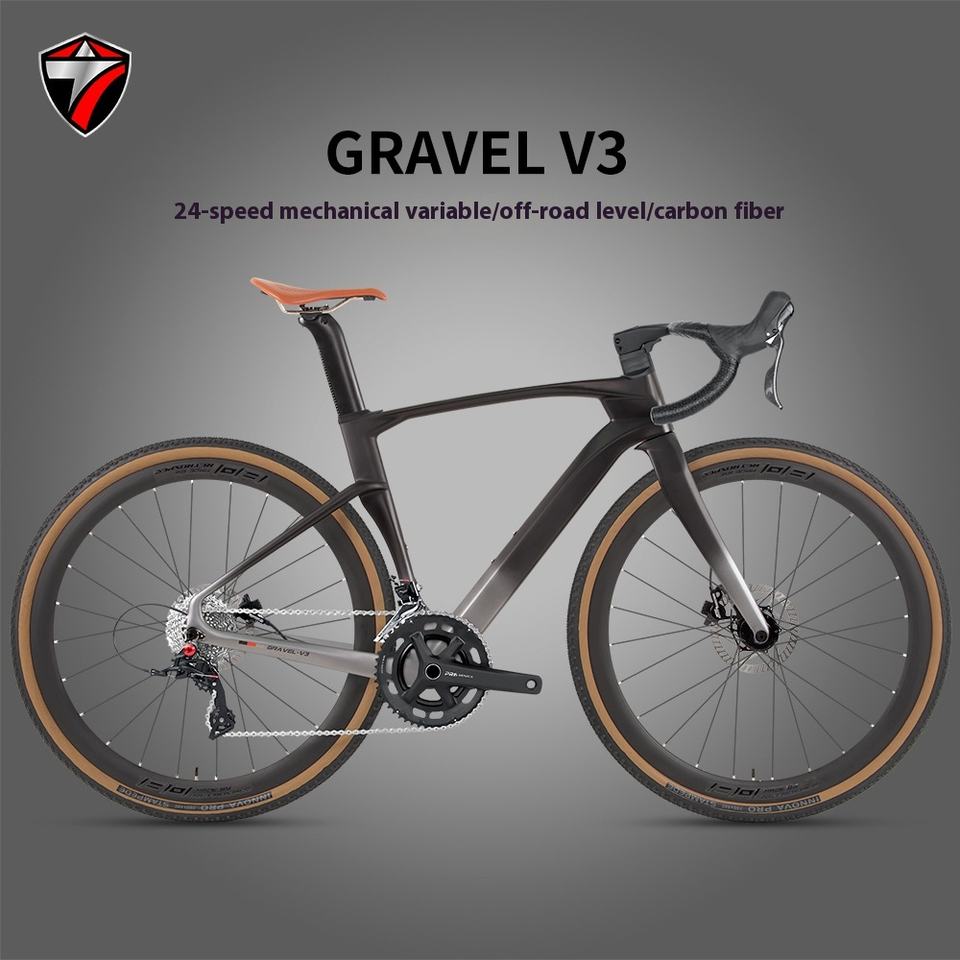 Bicicleta de Carreras Todoterreno GRAVEL-V3 de 24 Velocidades con Fibra de Carbono, Freno de Disco y Cableado Interno Completo