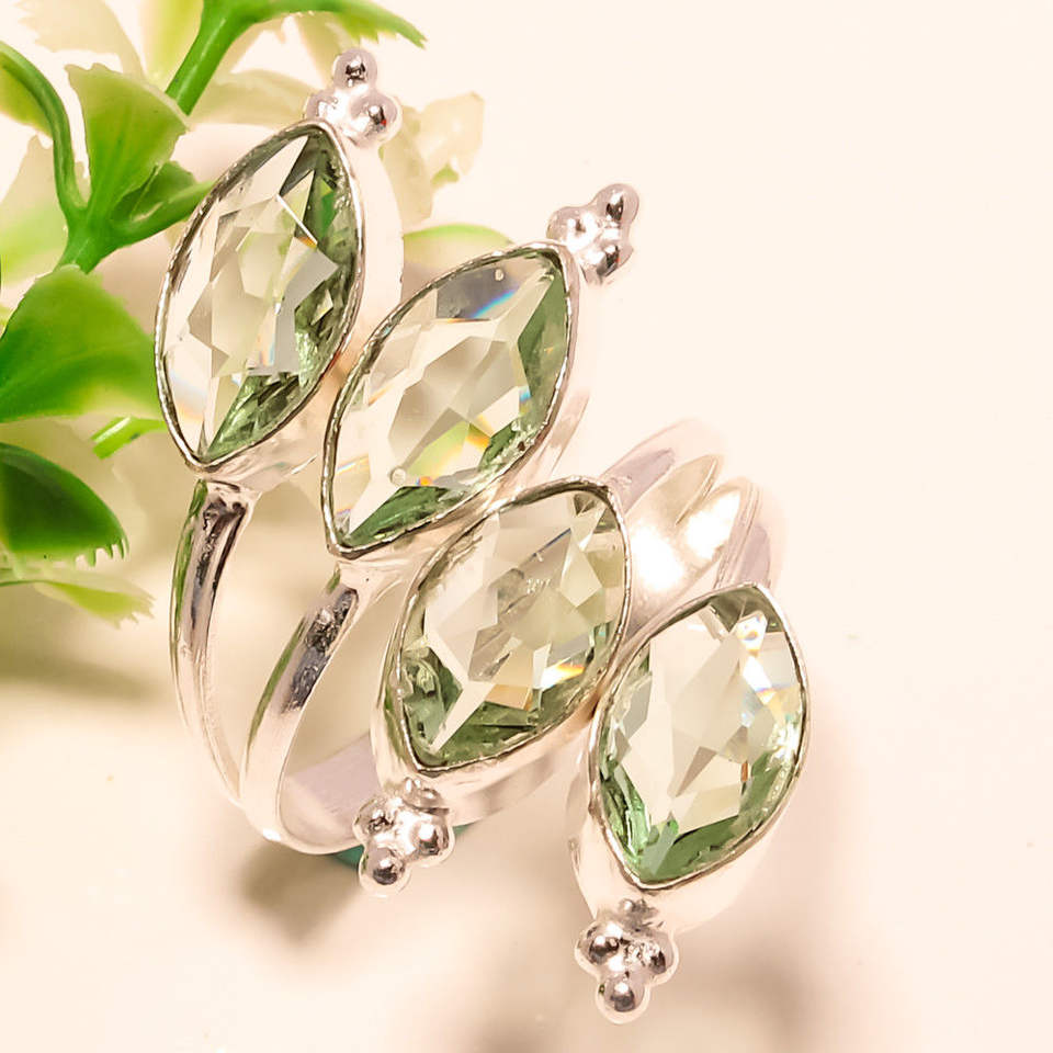 Amatista verde de piedras preciosas de plata 925 de joyería de anillo ajustable