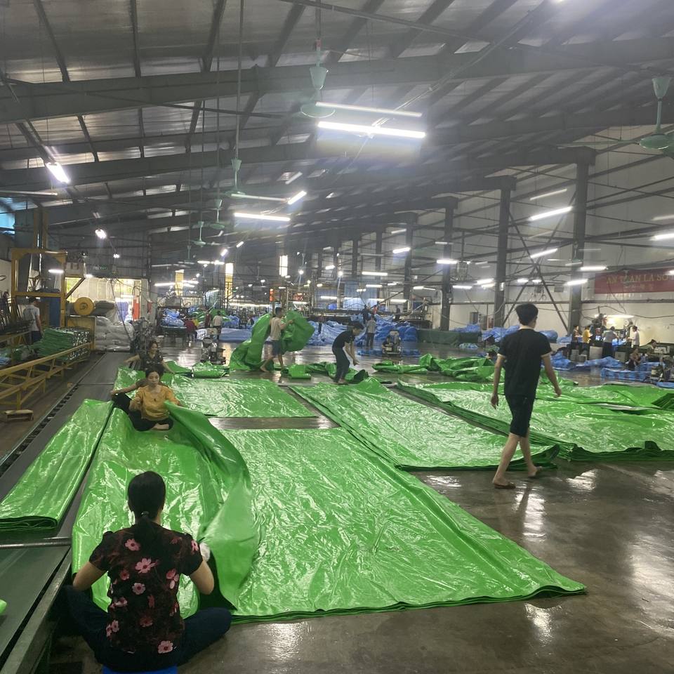 Hojas de plástico impermeables de lona PE plateada verde 130GSM listas para el fabricante vietnamita a bajo precio con muestra gratis