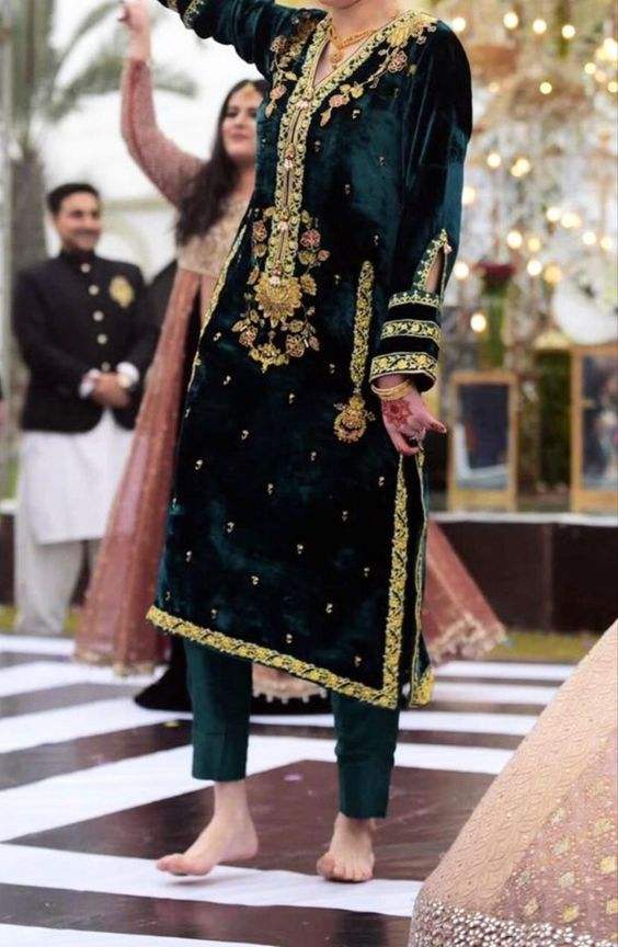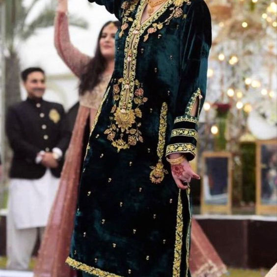 DABKA-TOP largo de terciopelo verde, bordado con cuentas de cristal, para vestir en fiesta o boda, 2022