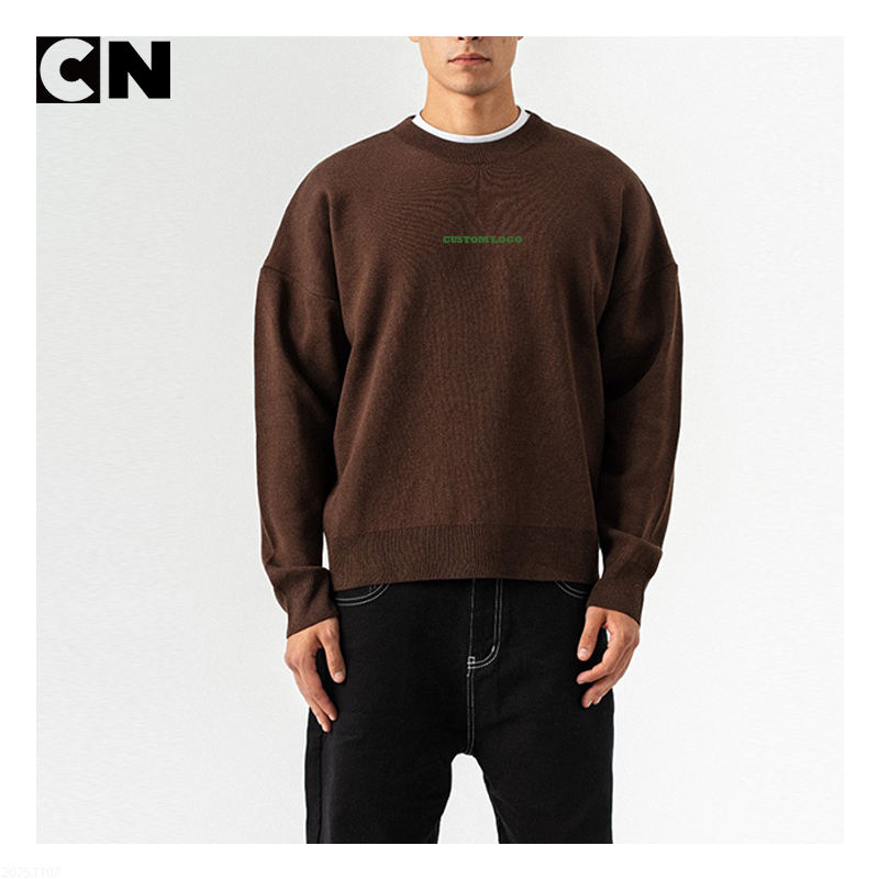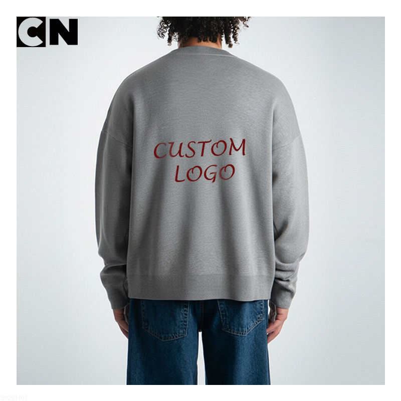 Suéter de Invierno para Hombre, Tejido de Punto, 100% Acrílico, Talla Grande, con Logotipo Personalizado de Fábrica con Certificación GRS, Bordado Frontal y Estampado Gráfico en la Espalda