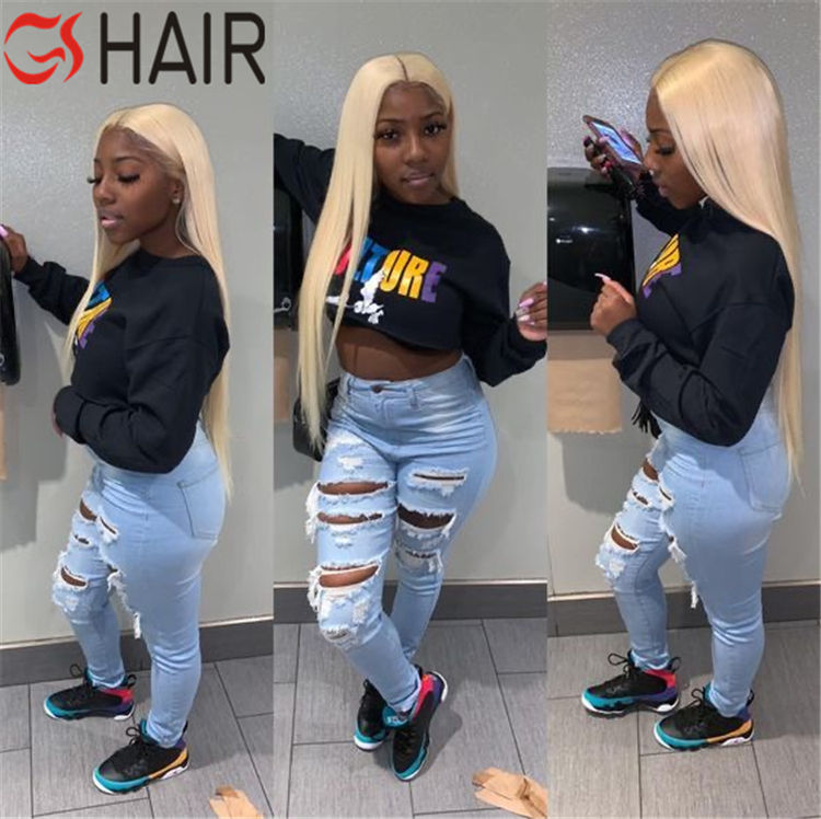 GS cutícula alineada 8-50 ''613 paquetes de cabello rubio, 10A virgen europeo 613 platino Rubio extensión de cabello humano trenzado