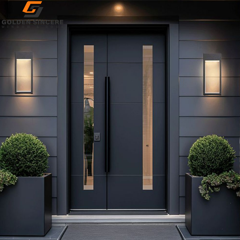 Puerta frontal de acero inoxidable con acabado de espejo GS para villas de alta gama