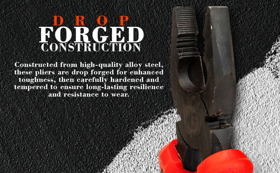 Alicates Combinados Industriales de Alta Resistencia GS, Acero al Carbono, Cortador de Alambre E-2020, Pulido Natural, Métrico, Moldeado en Plástico