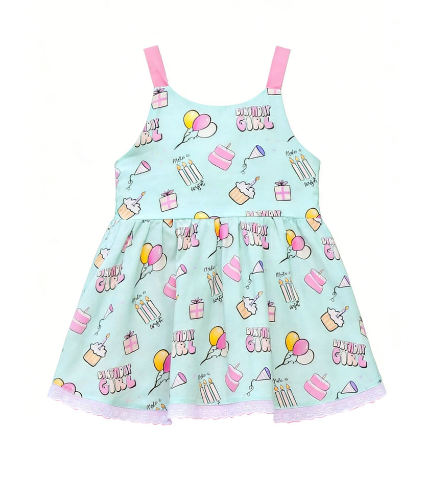 Vestido de Niña Personalizado GSD3659 con Estampado de Pastel de Cumpleaños Azul de Verano, Venta al por Mayor