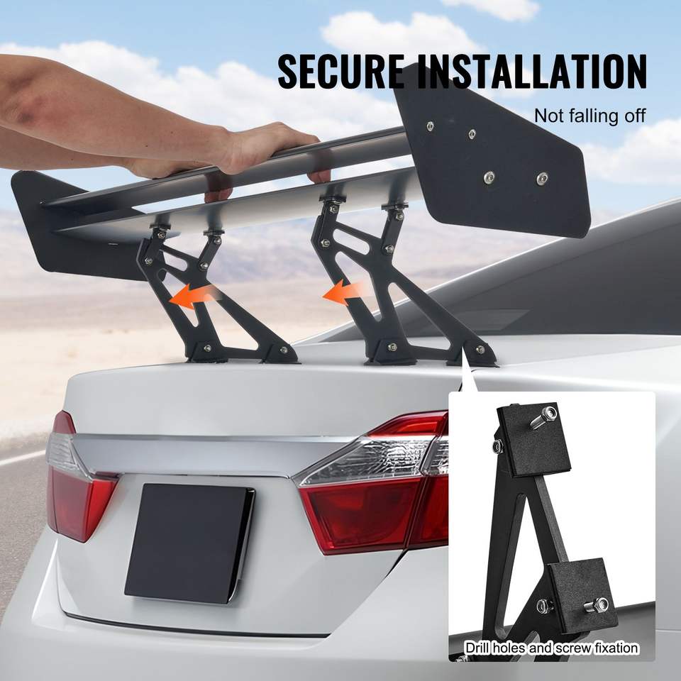 Alerón Trasero Universal para Automóvil GT Wing de 53.1 Pulgadas, Doble Plataforma Ajustable, Ligero, de Aluminio, Inspirado en las Carreras