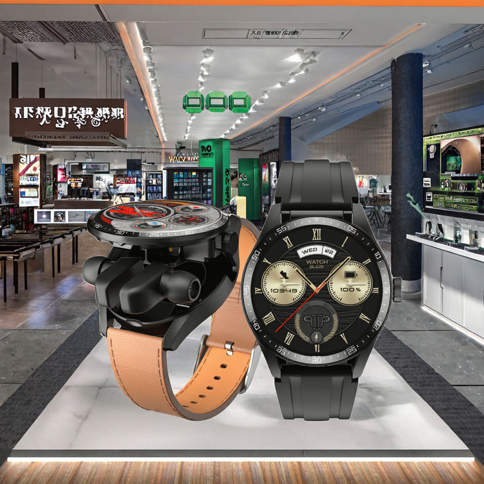 Reloj Inteligente Android 2 en 1 GT5 Buds con Monitor de Actividad Física, Monitor de Sueño, Brújula, Respuesta a Llamadas, Correa de Cuero, Carga Inalámbrica