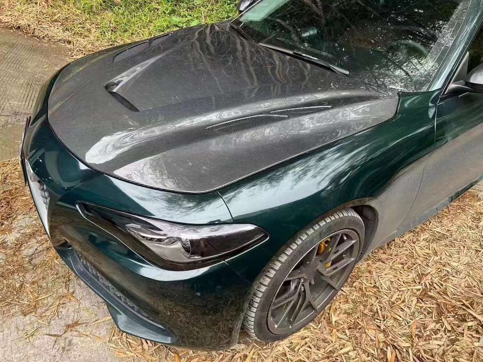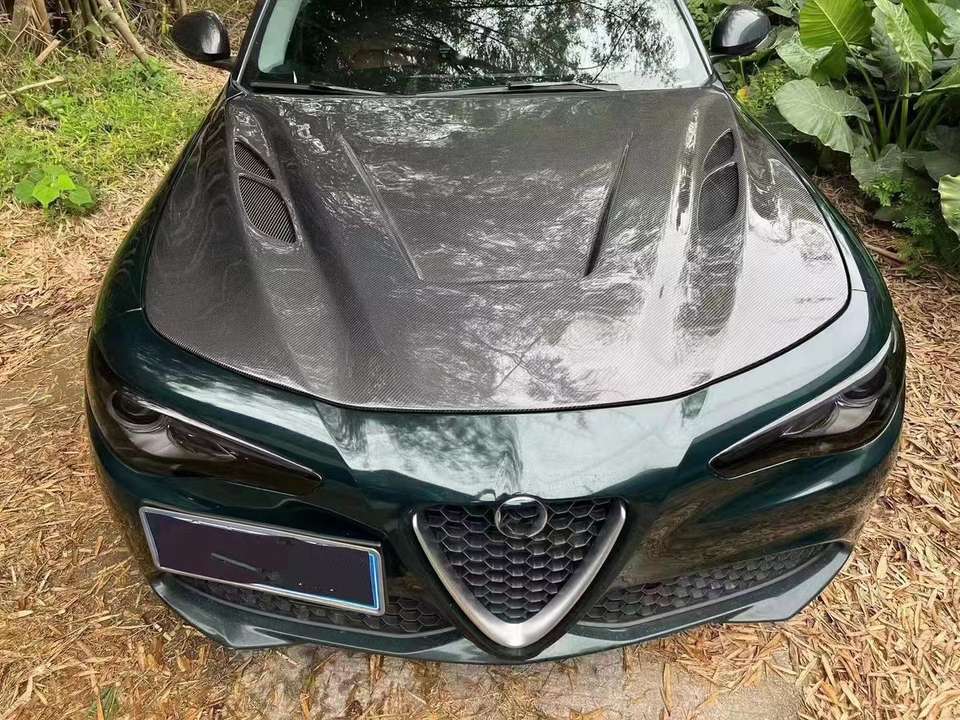 Capó estilo GTA para Alfa Romeo Giulia, Kit de carrocería de cubierta de motor de fibra de carbono