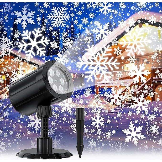Proyector de Copos de Nieve Dinámico GUSODOR, Luces Decorativas para Interiores y Exteriores, Proyección de Nieve Impermeable IP65 para Navidad