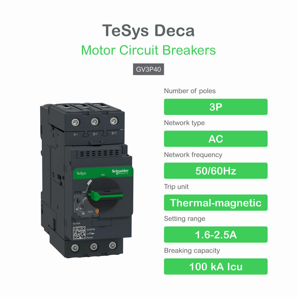 GV3P40 TeSys Deca Protector de arranque manual 30 a 40 un disyuntor magnético térmico con perilla giratoria EverLink BTR Producto