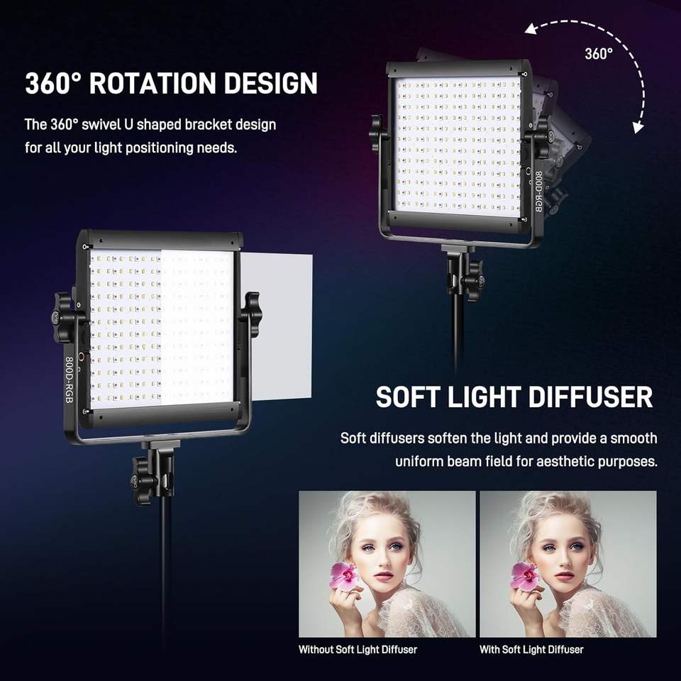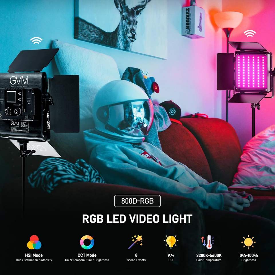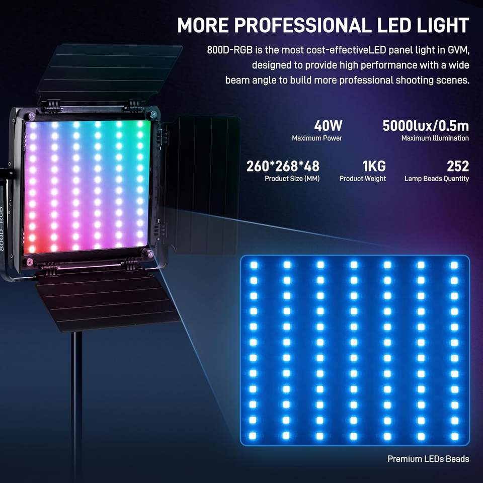 Luz de Video LED GVM 800D de 40W, CRI95+ 3200K-5600K, Regulable, para Estudio/YouTube