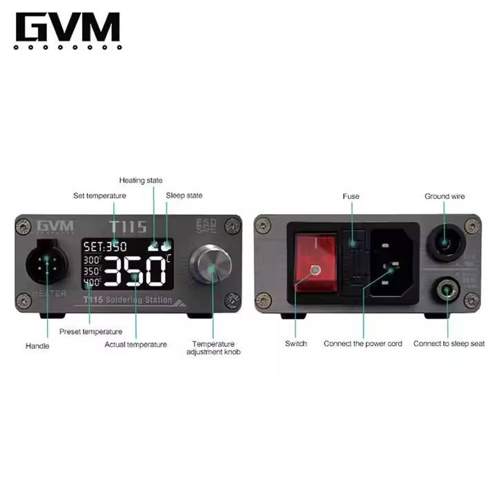 Estación de soldadura inteligente GVM T115 con soldador eléctrico JBC puntas de soldadura con mango para reparación de teléfonos SMD BGA