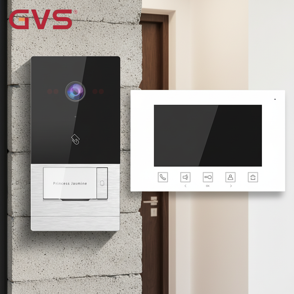 Intercomunicador para Apartamentos GVS, Monitor Interior de 7 Pulgadas con Dos Cables y Botones Táctiles, Videoportero, Teléfono de Puerta, Intercomunicador Audiovisual