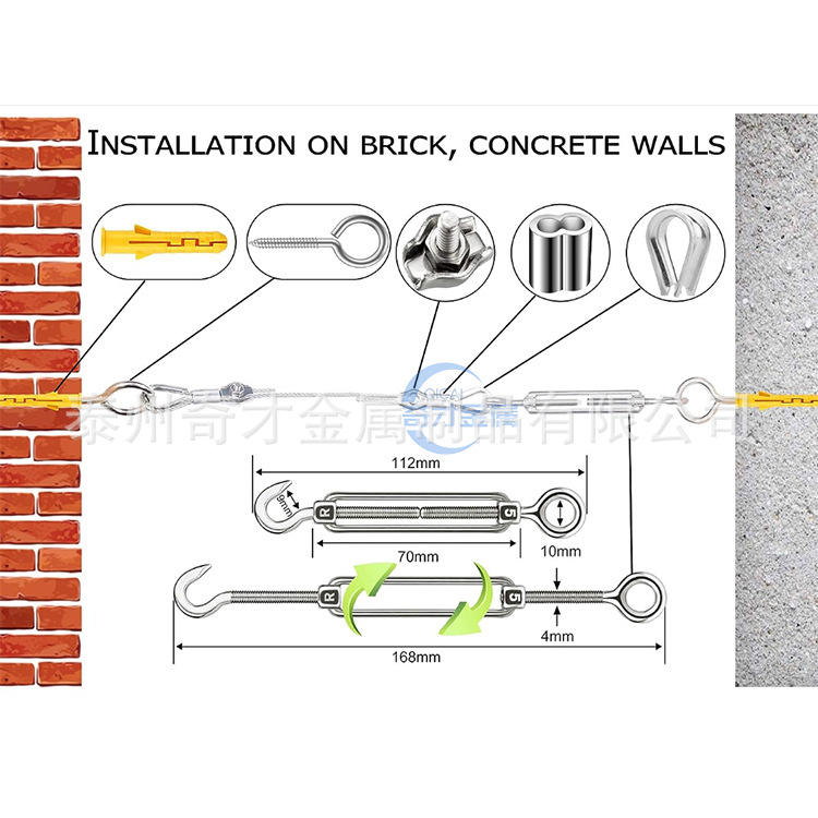 Juego de cables de acero inoxidable 304 GZFTM, kit de barandilla con ganchos y clips para terrazas