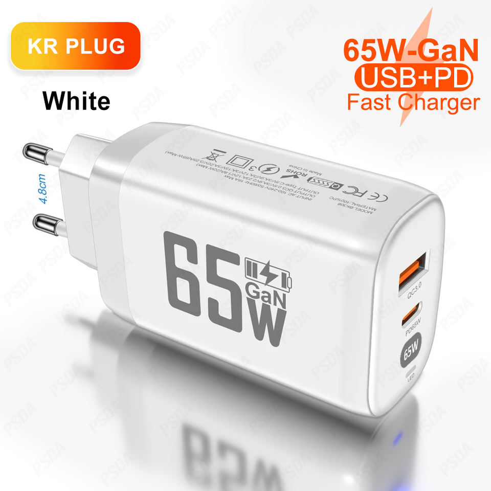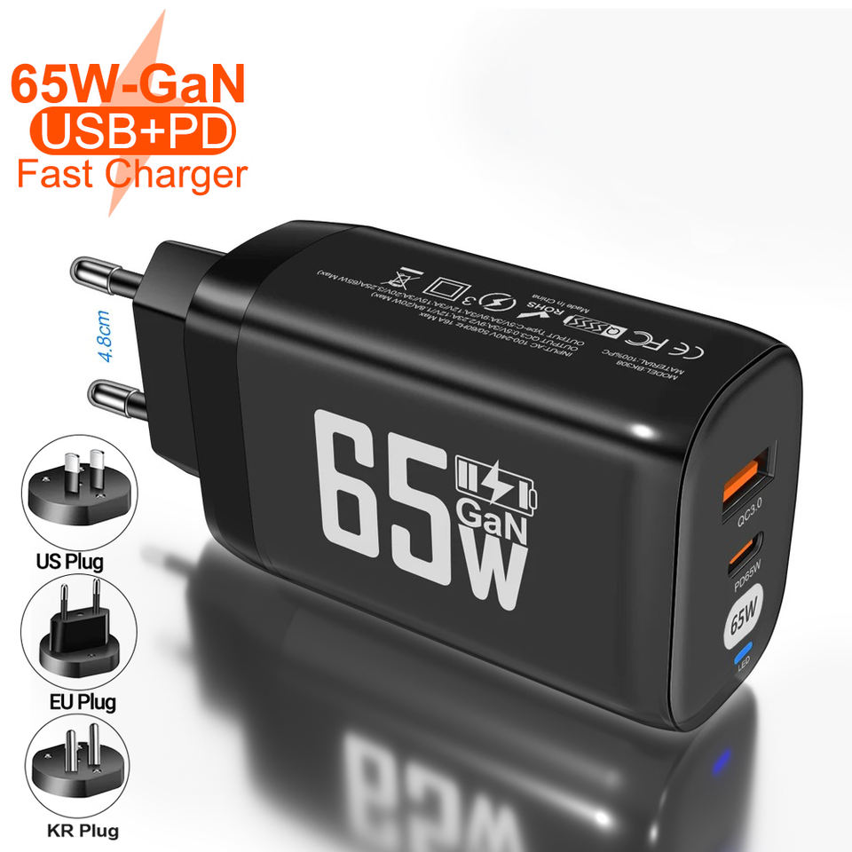 Cargador GaN de 65W, Cargador Rápido USB Tipo C, Cargador Rápido QC3.0, Adaptador de Pared, Cable Tipo C PD de 10A para iPhone, Xiaomi, Samsung, Oneplus