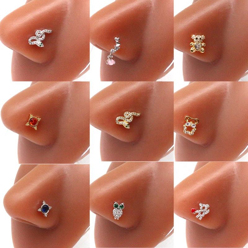 Name:Diamond CZ L Shaped Piercing Jewelry Nose Stud Rings
