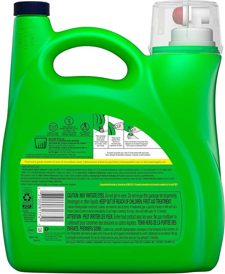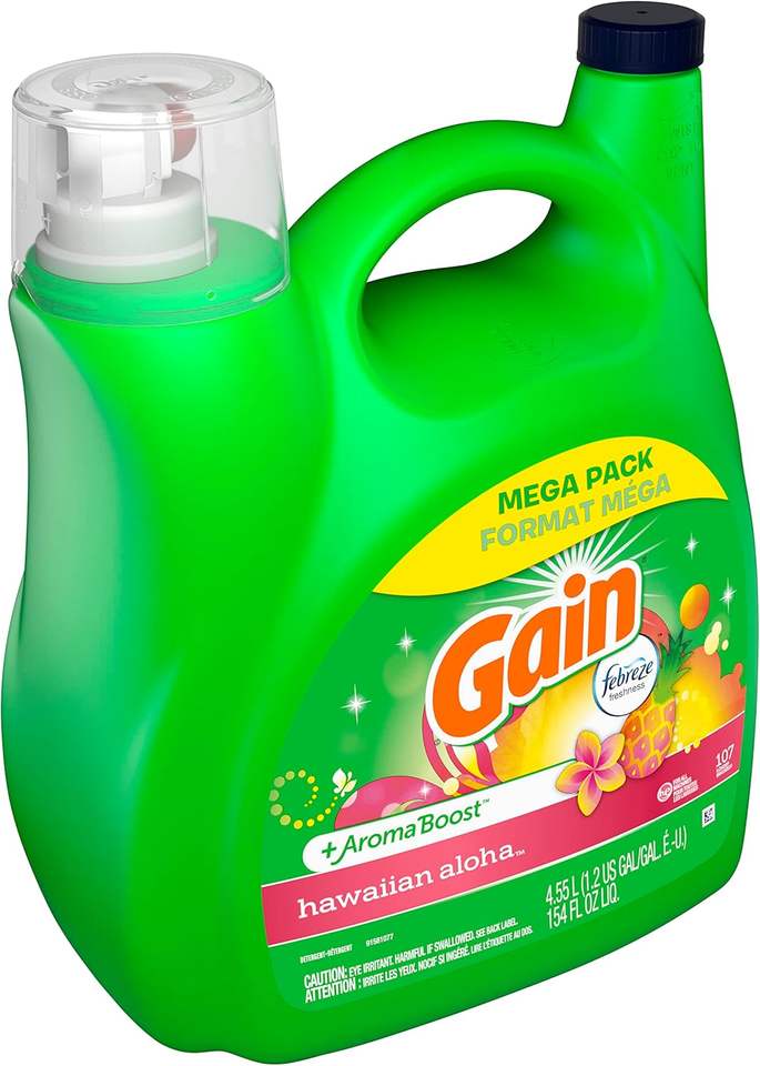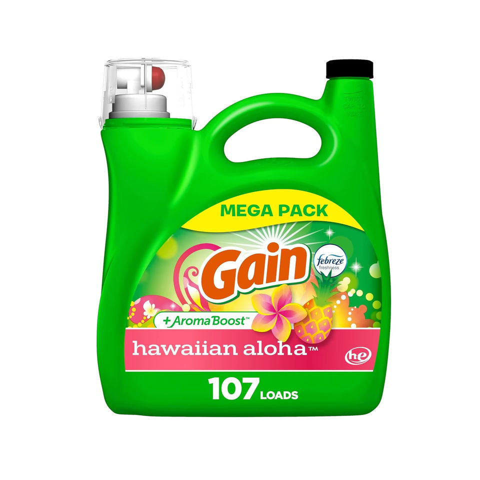 Detergente Líquido para Ropa Gain + Aroma Boost, Aroma Hawaiano Aloha, 107 Cargas, 154 Onzas Líquidas, Compatible con Lavadoras HE