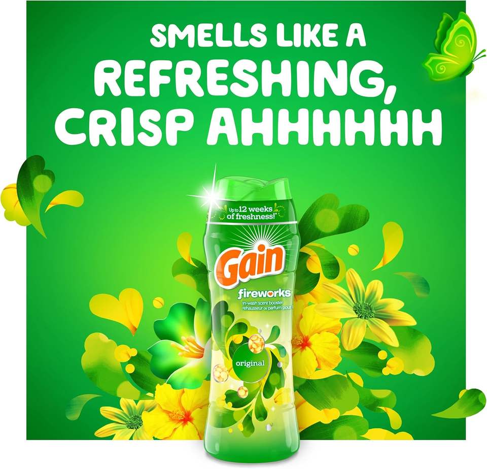 Perlas de Aroma para Lavadora Gain Fireworks, Original, 9.1 oz/Paquete (Paquete de 4)