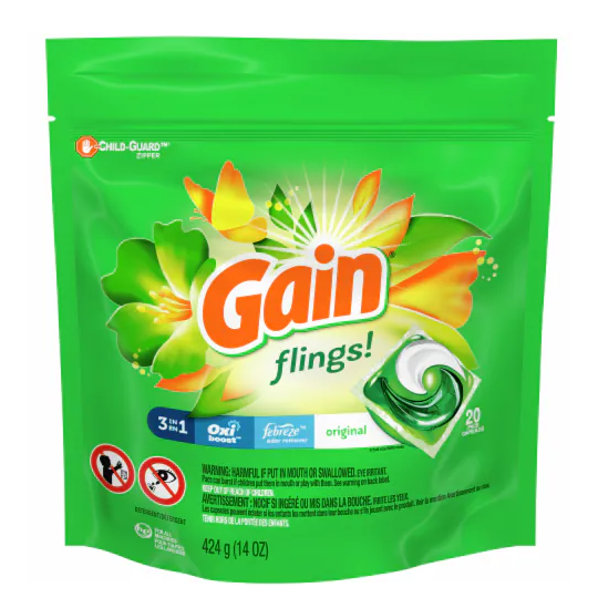 Cápsulas de Detergente Líquido para Ropa Desechables Gain Flings HE Spring Daydream Scent, Ecológicas, con Aroma a Lavanda