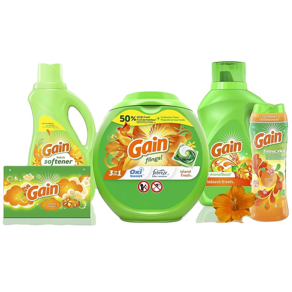 Detergente Líquido para Ropa Gain Flings, Aroma Island Fresh, 112 Unidades, Compatible con Lavadoras HE