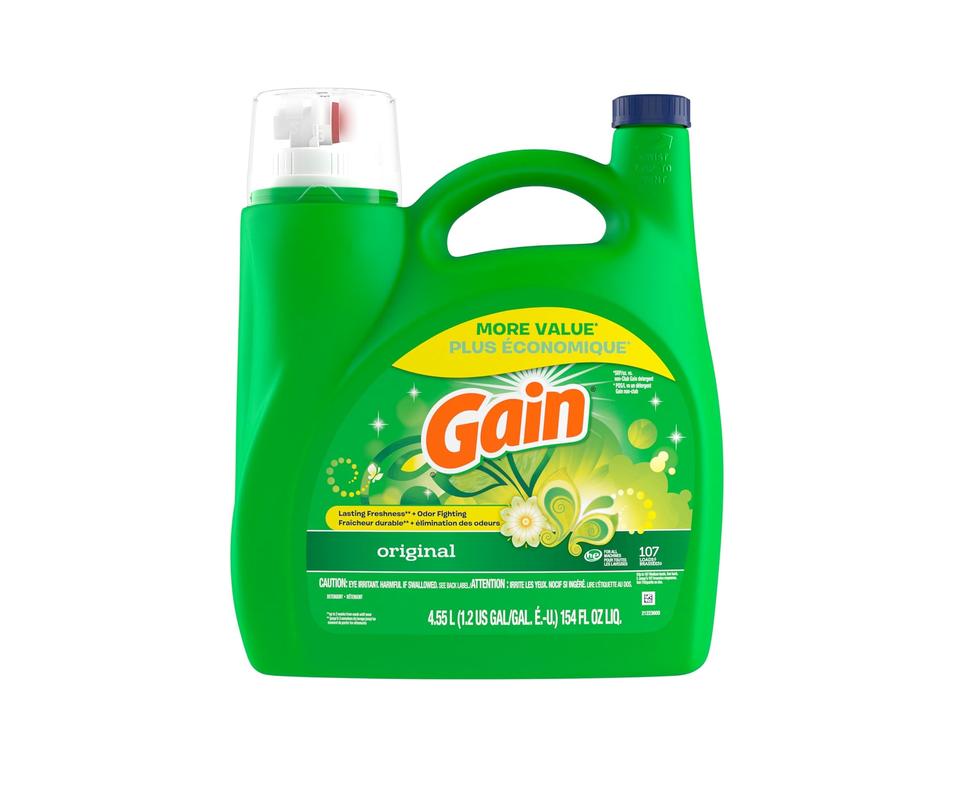 Detergente Líquido para Ropa Gain, Aroma Original, 154 fl oz, 107 cargas, Frescura + Control de Olores, Lavadora de Alta Eficiencia