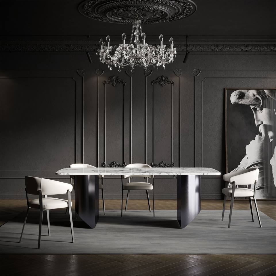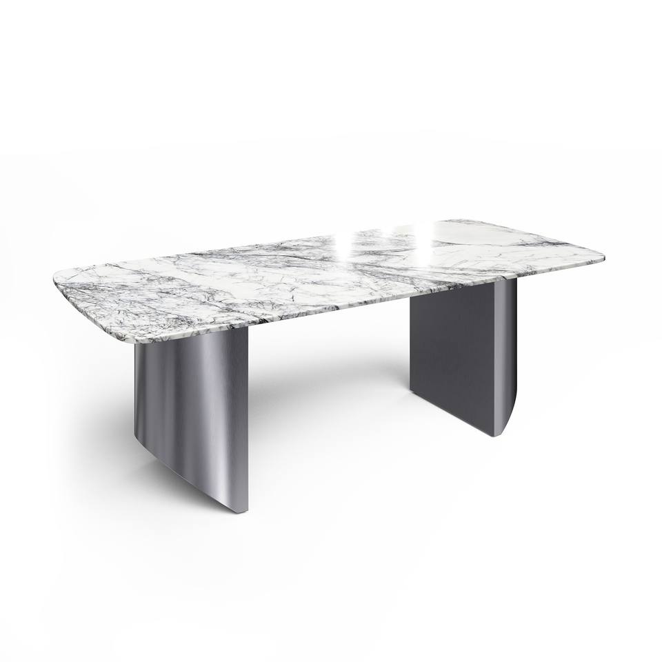 Mesa de Comedor Rectangular de Mármol Galaxy de 220 cm, Blanca y Plateada, Estable, para 6 Personas, Diseño Moderno y Minimalista, No Requiere Ensamblaje