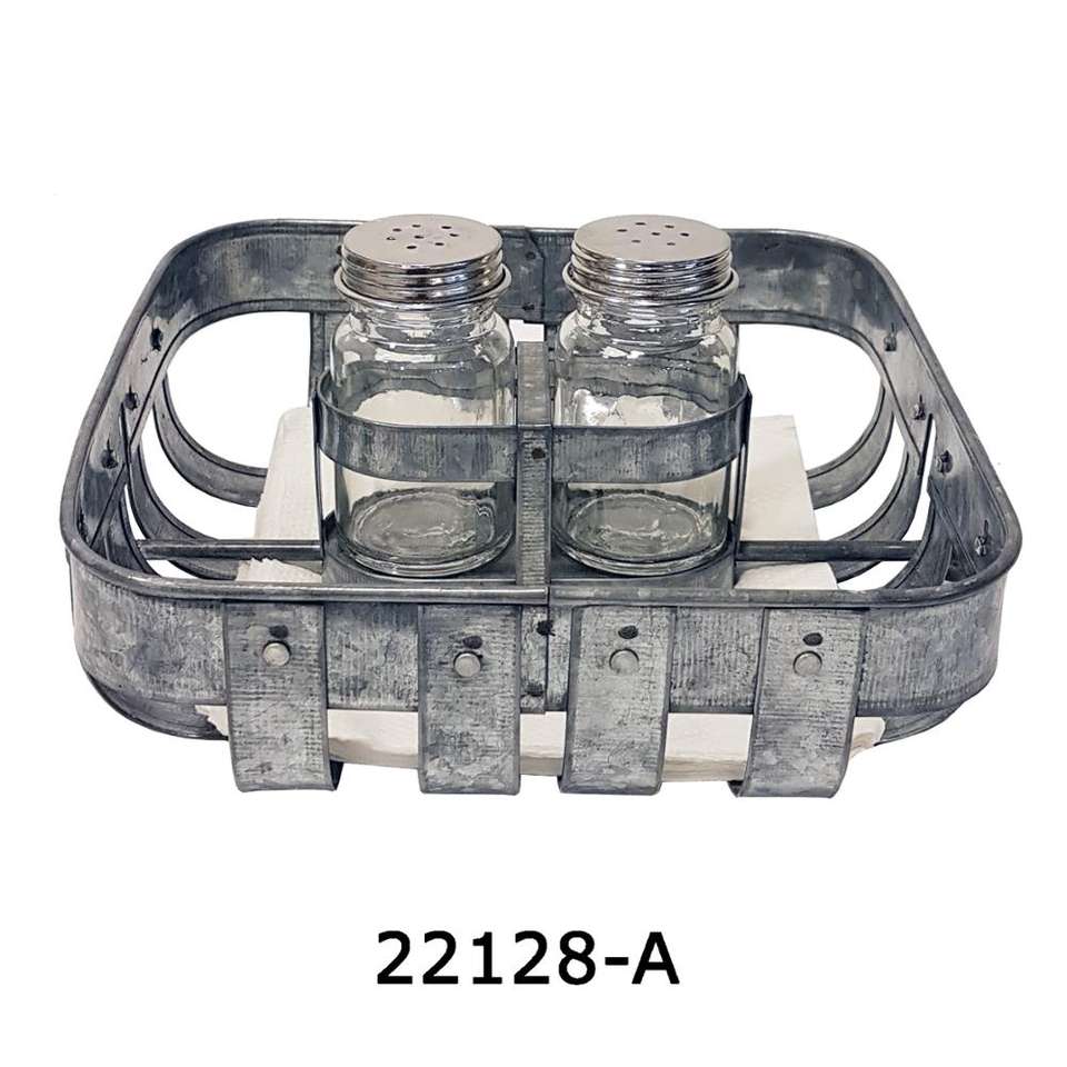 Caddy galvanizado con botella de vidrio para especias y papel en juego de soporte para salero Caddy con acabado rústico