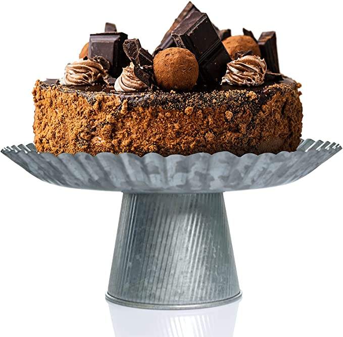 Elegante soporte de pastel de metal galvanizado con acabado elegante, perfecto para la cocina del hogar y accesorios para servir en ocasiones especiales