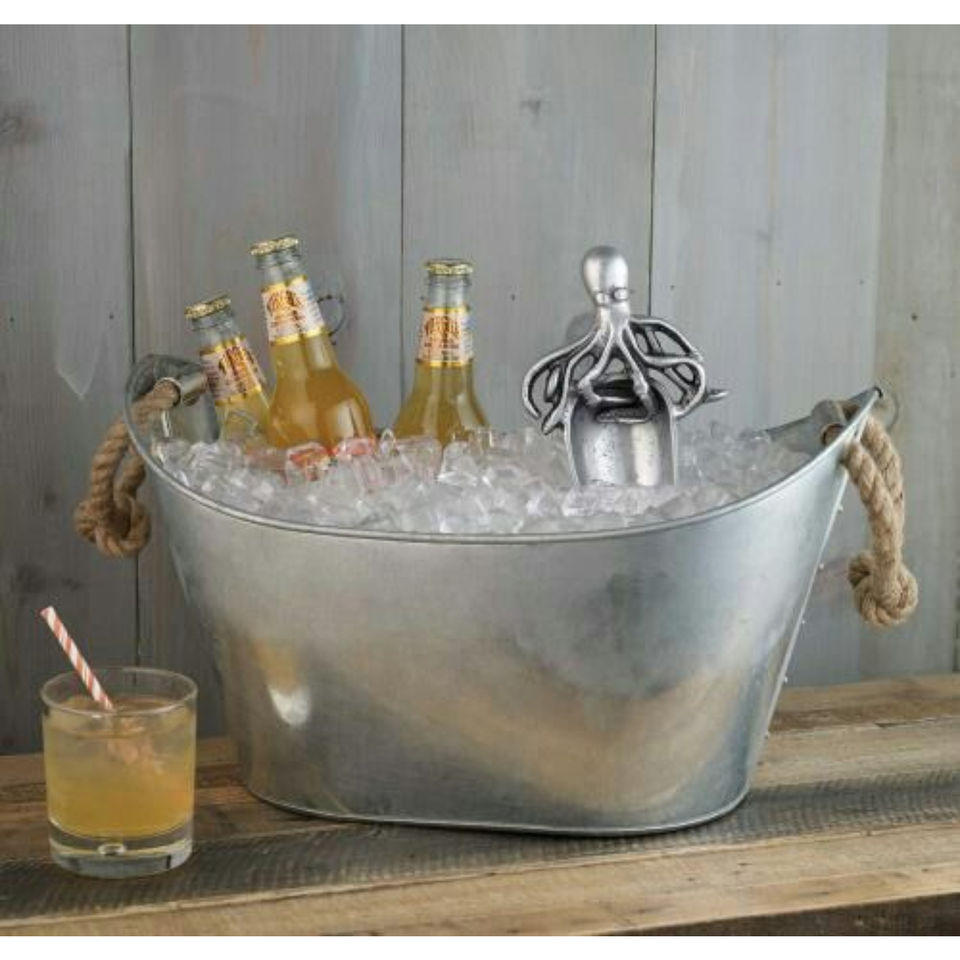 Cubo de hielo para bebidas de Metal galvanizado con asas de cuerda, Enfriador de bebidas rústico para cerveza, vino, fiesta, Bar, Patio, uso al aire libre