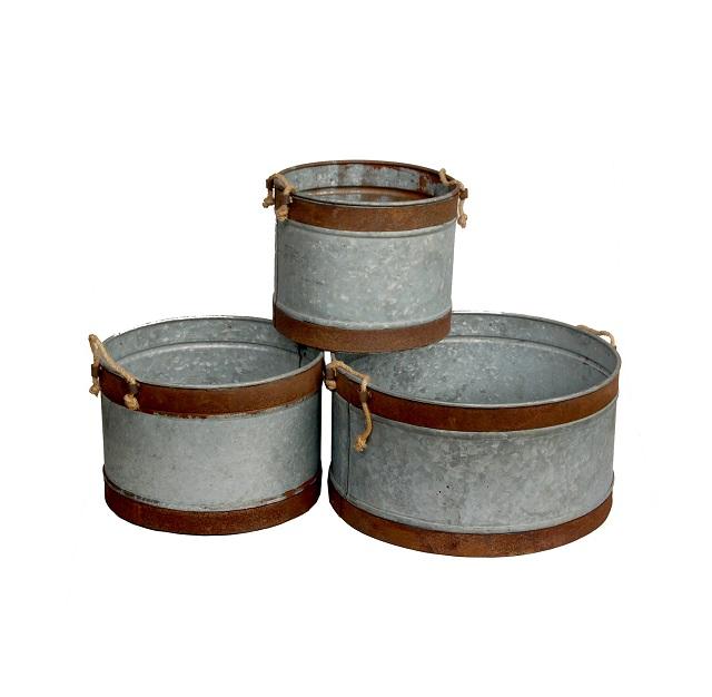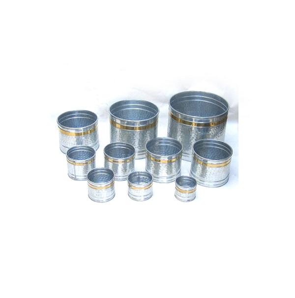 Maceta anidada de metal galvanizado con banda de latón Maceta Lisa para decoración del hogar Juego de 10 piezas
