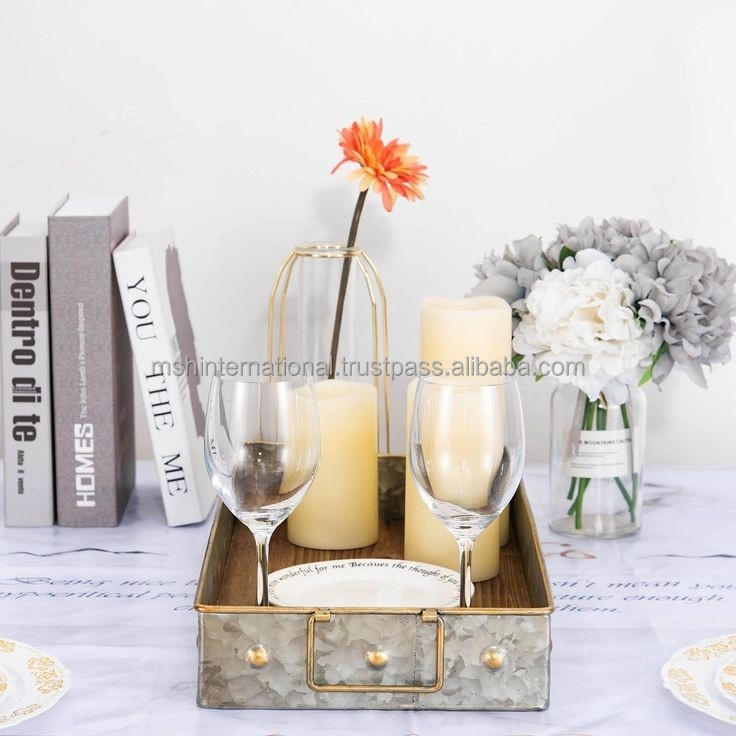 Bandeja ovalada de metal galvanizado con acabado rústico para hogar y hoteles Bandeja galvanizada barata y mejor