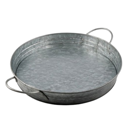 Bandeja redondeada galvanizada con asas laterales Nueva llegada Bandeja de servicio decorativa de metal galvanizado Fabricación por India